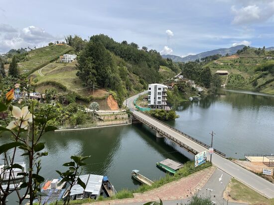 In Guadalpe halten wir nur kurz für einen Fruchtsaft an. Guanabana - Chirimoya. Dann fahren wir weiter. Fernando will mir das wieder aufgebaute Dorf Penol zeigen. Die Replica, die als Gedenkstätte und als Touristenattraktion nach der Eröffnung des Stausees aufgebaut wurde.