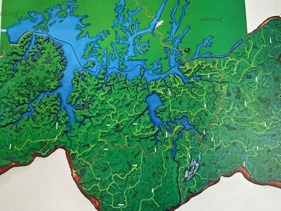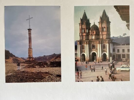 Doch da sind keine Häuser mehr, versichert mir die Frau im Museum. Sie zeigt mir die beiden Bilder an der Wand. Sie zeigen die alte Kirche und das Kreuz das an der gleichen Stelle aufgestellt wurde und das ich gestern auf dem See gesehen habe. Das Dorf und die Kirche wurden komplett zerstört, bevor der See gefüllt wurde. "Nein", meint sie, "da steht kein Haus mehr. Das wurde alles gesprengt. Dinamita." Womit das auch geklärt wäre. Sie lächelt, als ich ihr sage, dass der Guia gestern erzählt hat, dass da unten noch Häuser wären und Taucher manchmal hinunter tauchen, um Dinge zu suchen. "Sie erzählen halt gern spannende Geschichten", meint sie wissend.