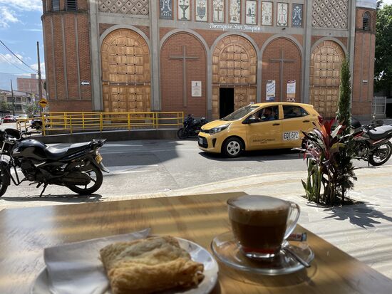 Kolumbianer müssen Auto-Verrückt sein. Oder Motorrad. Je nach Budget wahrscheinlich. Man ist auch in der Stadt vorwiegend per Auto unterwegs. Trotz Metro. Man parkiert direkt vor der Pizzeria, kurvt durch die engen Strassen, weicht sich aus, kämpft um den Vortritt, um jeden Znetimeter. Vor allem die Motorradfahrer sind da Spezialisten. Immer noch kanpp vor dem Auto vordrängen, die kleinste Lücke ausfüllen. Manchmal kommen sie in ganzen Horden. Manche mit der Kiste am Rücken, Pizzakuriere. Fast jedes Restaurant bietet Lieferservice an.