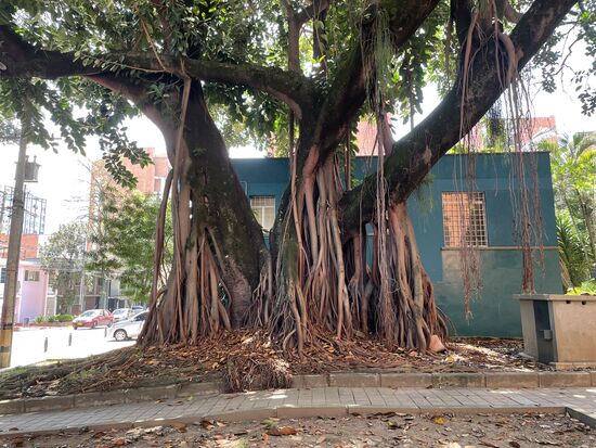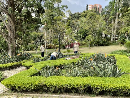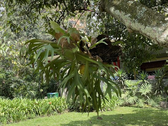 An den Bäumen wachsen Bromelien oder Geweihfarne. Oder sie hängen in grossen Töpfen an den Ästen. Ein kleines Paradies, das hier am Hang über Medellin liegt.
