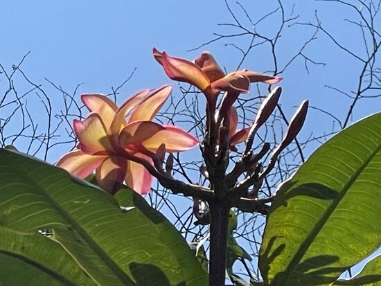 Ich komme durch ruhige Wohngegenden mit kleinen Parks, Blühende Frangipani-Bäume in geld, weiss und rosa, Palmen, Hibiskus, Papageienblumen und Heliconias. Und überall riesige hohe Bäume, die wunderbaren Schatten geben, denn es wird schon wieder richtig warm. Die schön gepflegten Vorgärten werden sorgfältig gewässert. Überall sind Arbeiter dabei, Hecken zu schneiden, Gehwege zu kehren,