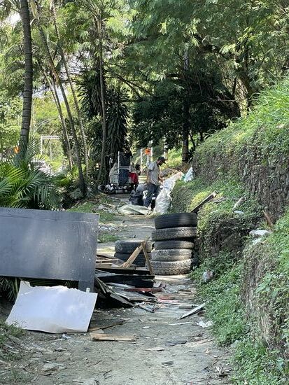 Mit der Zeit aber verlasse ich die Wohnquartiere, ich bin am Fusse des Cerro Nutibara, da wo ich an einem der ersten Tage hinauf gestiegen bin. Ich gehe auf einem schmalen Weg am Fusse des Hügels und merke, dass sich hier eine Sammelstelle der obdachlosen Venezulaner an die andere reiht. Möglicherweise wohnen die hier in der Nähe in den Büschen. Irgendwo komme ich an einer Feuerstelle vorbei. Was für ein Leben, hier am Rande der Gesellschaft zu vegetieren.