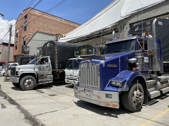 Und davor stehen die grossen Camione, die die Waren abholen.