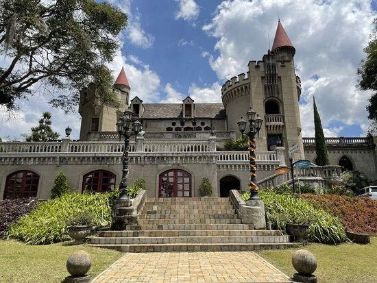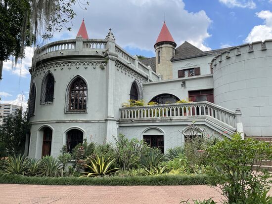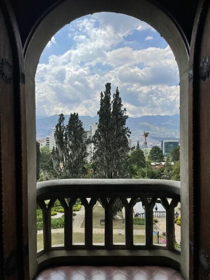 Ein gotisches Schloss hier in Medellin mit Sicht über die Stadt ist tatsächlich etwas sehr Exotisches. Da man das Schloss nur mit Führung besichtigen kann, habe ich mich an der Kasse für die übernächste Führung eintragen lassen.