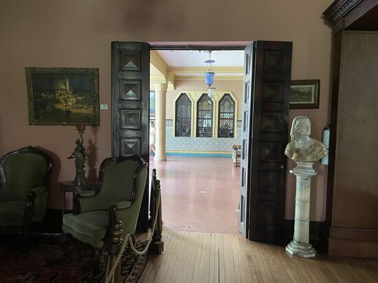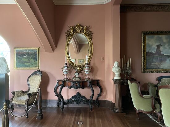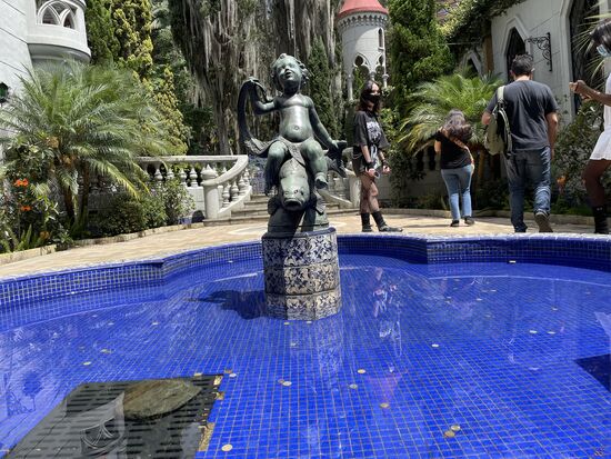 Bei der Führung erfahre ich, dass das Schloss 1930 nach Vorbildern aus Europa im gotischen Still gebaut wurde. Bis 1971 wohnte eine Familie in dem Haus. Vor allem die Frau, die holländische Wurzeln hatte, befasste sich mit der Einrichtung des Hauses und sammelte Kunst und Möbel, um die Räume stilgerecht einzurichten. Es ist eine Sammlung von Gemälden und Möbeln, die sehr europäisch anmuten. Dazu kommen aber auch viele Keramiken aus Kolumbien, auch aus der indigenen Kultur. Ein wunderschönes Gesamtkunstwerk, das heute einer Stiftung gehört.