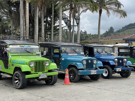 Nach dem Frühstück gehe ich zum Hauptplatz, da stehen die Willys bereit. Ich dachte zuerst an einen Scherz, als ich las, dass die Jeeps Willy heissen, doch auch da hilft Wikipedia weiter. Die Willys MB wurden als Armeefahrzeuge entwickelt und gelten als Urtyp der Geländewagen. Genau das richtige für diese Strassen und in all den schrillen Farben weit weg von der ursprünglich grünen Tarnfarbe.