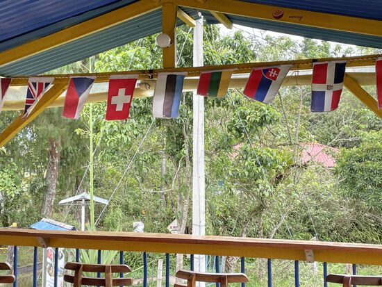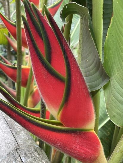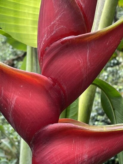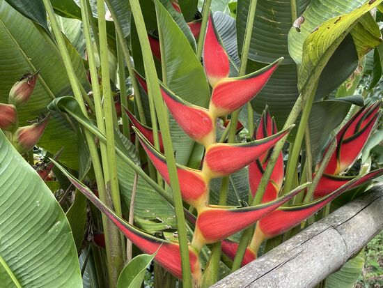 Natürlich muss ich all die vielen Heliconien festhalten, die überall am Wegrand wachsen. Und die grossen Bananenstauden. Natalie erklärt den Unterschied zwischen den direkt essbaren Bananen, so wie wir sie kennen und den Plananos, den Kochbananen. Die einen haben schwarze Flecken am Stamm, aber ich könnte sie nicht einfach so zuordnen.