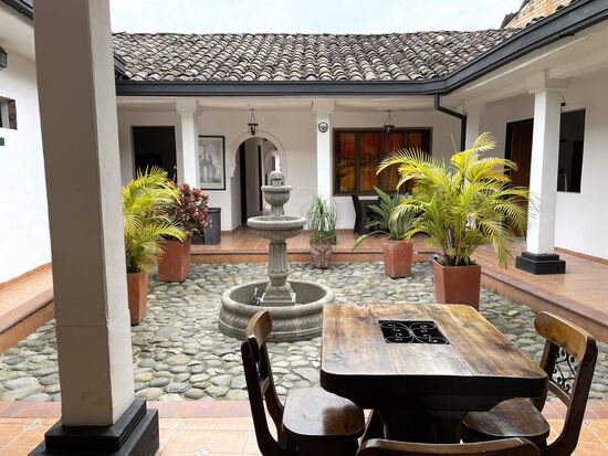 Ich habe wunderbar geschlafen. Bis zum Zimmer im dritten Innenhof dringt kein Lärm von der Strasse, sofern es dort überhaupt Lärm gegeben hat. Die Stadt war ja gestern Abend schon vor mir eingeschlafen. Am Morgen höre ich einzig irgendwo einen Hahn krähen, aber das gehört zu Südamerika. Kaum ein Ort auf diesem Kontinent, wo man nicht von Hähnen geweckt wird. Medellin muss ich bei meiner Behauptung allerdings ausnehmen, da waren es die Mechaniker und die Motoren, der Autowerkstatt, die ich am Morgen gehört hatte.
