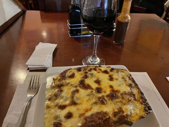 Und dann kehre ich in der Pizzeria ein. Ich bin noch sehr früh und daher der einzige Gast. Doch nach und nach füllt sich das Restaurant und als ich gegen acht Uhr nach einer wunderbaern Lasagne und zwei Glas Rotwein das kleine Lokal verlasse, ist es proppenvoll. Jetzt sind es nur noch ein paar Schritte zurück zum Hotel.