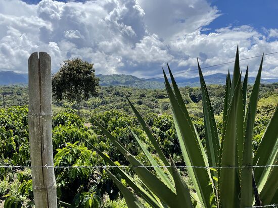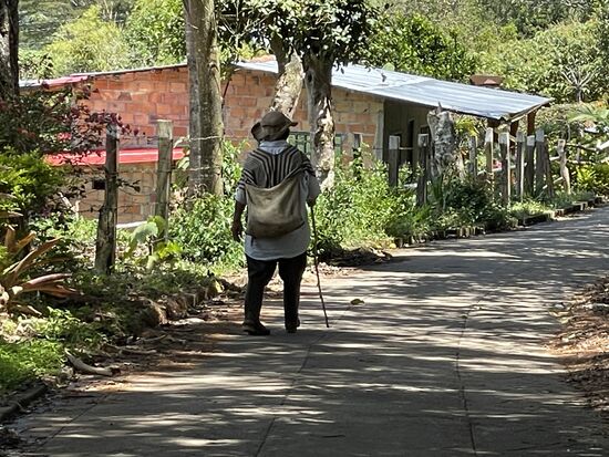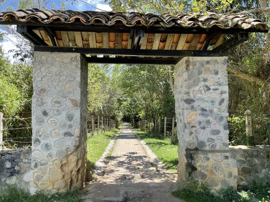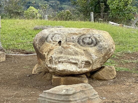 Da oben gibt es Kaffeeplantagen hinter Zäunen, grosse Agaven, Bananenstrauden und weit hinten geht der Blick auf Berge. Weil mir ausser einem alten Mann mit einem Stock niemand begegnet ist, nehme ich die nächste Gelegenheit wahr, mich über meinen Weg zu erkundigen. Der Mann der sein Auto belädt und den ich frage, ob ich hier zur Ausgrabungsstätte komme, ist ganz entgeistert. "No, Senorita, da kommen sie niemals hin. Da müssen sie zurück". "Zurück?" Zweifelnd sehe ich ihn an, aber er ist völlig überzeugt, dass ich hier falsch bin." Aber da geht doch ein Weg zum Museum", versuche ich zu erklären. "Ja, das Museum ist aber nicht der Park", windet er sich. "Aber das gehört doch zusammen". Ich weiss im Moment nicht, was ich jetzt machen soll. Die ganze Höhe, die ich mir mühsam erkämpft habe, wieder zurück. Zum Glück kommt jetzt eine Frau aus dem Haus und wie ich sie sehe, scheint sie hier zu Hause zu sein. Der Mann ist vielleicht nur Gast hier. Ich frage auch bei ihr und sie meint: "Si, si, noch etwas geradeaus und dann links, dann kommen sie zum Park".