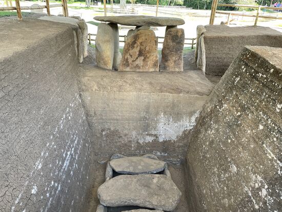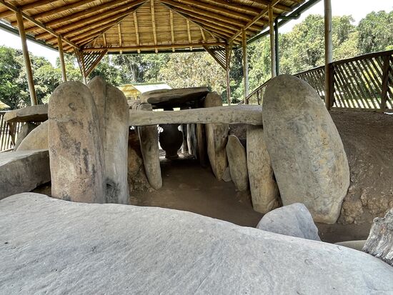 Es scheint sich um Gräber zu handeln, denn es sind hohe Steine mit flach darüber gelegten Steinplatten. Zum Teil liegen sie in tiefen Schächten, die mit Steinplatten ausgelegt sind. Das Schild am Eingang zu diesem ersten Komplex schreibt denn auch von einem Cementerio, ein alter Friedhof. Ein uralter Friedhof, entstanden 1000 JvChr.