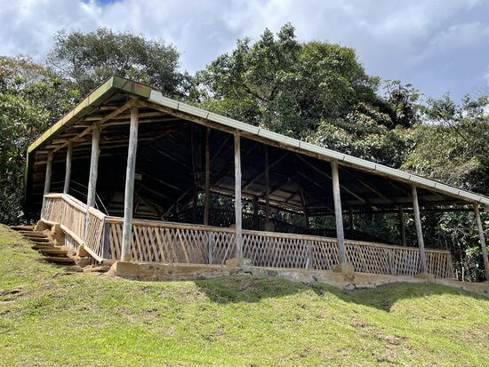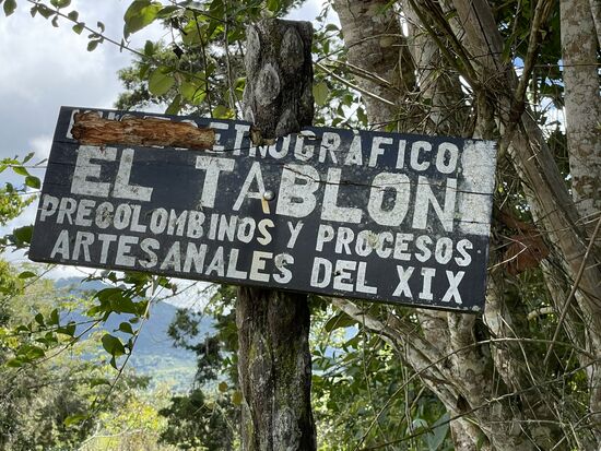Dass ich solchen Versprechnungen mit Recht nicht mehr traue, ist bald klar. Der erste Halt ist bei El Tablon. Weit unten auf einer Wiese stehen ein paar Statuen, geschützt von einem Bambusdach und natürlich führt da keine Strasse hin.