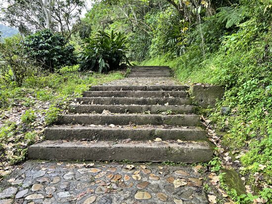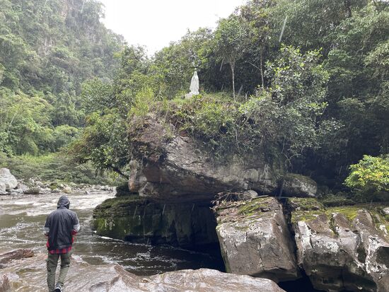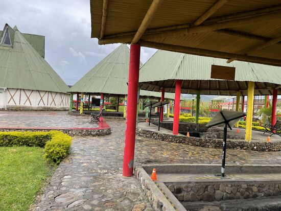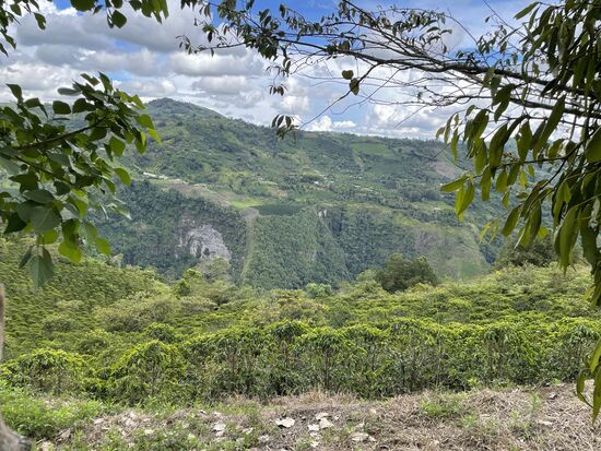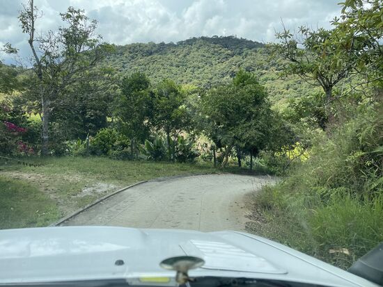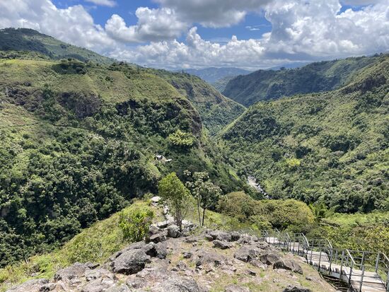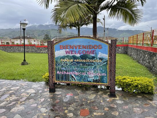 Doch es geht erstaunlich gut. Die fünf Statuen sind eindrücklich, vor allem die grösste, in der Mitte der Gruppe. Könnte ein Priester sein, mit einem breiten Halsschmuck und einem wuchtigen Nasenring. Dass Jefferson kein Guia ist, merke ich bald, er ist Chauffeur, von den Ausgrabungen hat er nicht viel Ahnung. Auch erklärt er mir, dass die beiden Ausgrabungsstätten heute geschlossen wären, so wie auch das Museum, das hier zum El Tablon gehört. Es ist Privat und wurde während der Pandemie geschlossen. Die beiden Parks aber sind ausgerechnet heute geschlossen, weil am Wochenende viel los war. Nachdem das geklärt ist und wir wieder oben beim Auto angekommen sind, fahren wir weiter. Durch eine grüne Gegend, zwischen Kaffeeplantagen und Bananensträuchern. Weit unten ist ein Tal, dort unten fliesst der Rio Magdalena, der wichtigste Fluss Kolumbiens, der hier in der Gegend entspringt. Auf der anderen Talseite kann ich einen Wasserfall entdecken, doch das ist nicht der, der auf unserer Tour eingeplant ist. Dafür erreichen wir jetzt La Chaquira. Tönt fast wie Shakira.