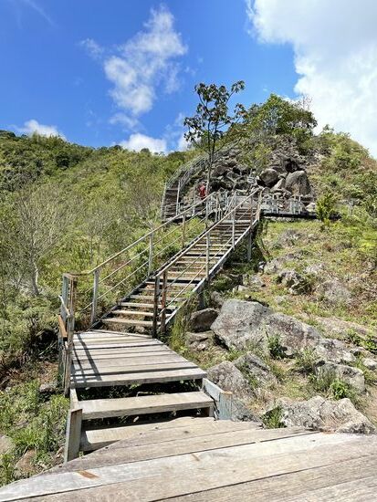 Wir sind schon fast losgefahren, als Jefferson noch etwas einfällt. Er setzt zurück und wir steigen aus. Die Frau, die uns den Eintritt kassiert hat, hat einen wunderschönen Blumengarten. Und viele Töpfe mit Orchideen. Und sie kennt sie alle ganz genau, weiss wann sie blühen, wie sie heissen. Viele der grossblütigen Orchideen stammen ursprünglich aus Asien, sind aber inzwischen hier so verbreitet, dass man sie fast als einheimisch betrachten kann, erzählt sie. Sie hat aber auch andere Blumen, eine Wunderschöne blühende Wachsblume, Amaryllis, die hier fast in allen Gärten leuchten, sogar eine Geranie und die duftende Weihrauchpflanze, die man bei uns auch oft mit Geranien kombiniert sieht. Auch Bromelien und Sukkulenten gibt es viele. Nachdem sie mir alles gezeigt und sich offensichtlich über mein Interesse gefreut hat, fahren wir weiter.