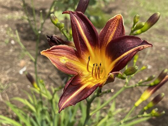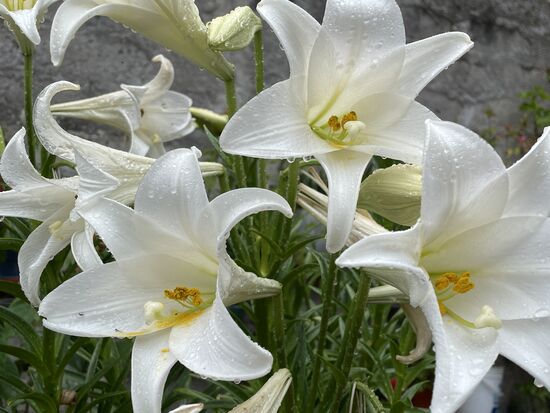 Während er seine Suppe fertig löffelt, sehe ich mir die Blumentöpfe im Hof an. Hier fallen vor allem die wunderschönen weissen Lilien auf.