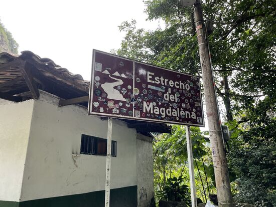 Es geht hinauf und hinunter und irgendwann überqueren wir den Magdalenafluss. Etwas weiter oben halten wir an. Hier gibt es eine Stromschnelle. Die alte Frau möchte hier aussteigen. Hätte sie tatsächlich den ganzen Weg zu Fuss gehen wollen? Ihr Sohn wohne etwas weiter oben, er verkaufe Avocados, gerne würde sie uns eine schenken, aber sie hat keine dabei. Dafür übergibt sie Jefferson zwei Eier. Es ist rührend, wie sie ihm die beiden sorgfältig in die Hand legt. Dann trippelt sie mit kleinen Schritten davon. Bergauf.