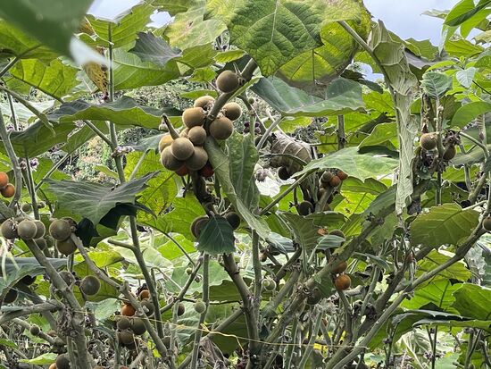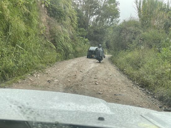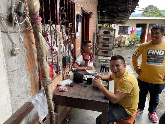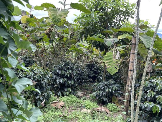 Als wir auf dem Weiterweg kurz anhalten, damit ich die Lulo-Früchte, die ich aus Peru unter dem Namen Cocona kenne, fotografieren kann, fragt uns eine alte Frau, ob sie ein Stück mitfahren dürfe. Natürlich darf sie und sie klettert auf die Hinterbank. Dort sitzt sie und sagt kein Wort, reagiert aber auch nicht, wenn man sie anspricht. Sei scheint nichts zu hören. Wir fahren weiter durch Kaffeeplantagen, an Lulo- und Bananensträuchern vorbei.