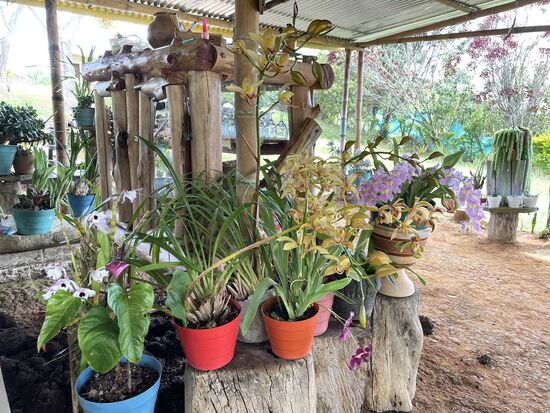 Und Jefferson fällt noch ein weiterer Ort ein, den er mir zeigen möchte. Im Dorfrestaurant gibt es ebenfalls sehr viele Orchideen. Überhaupt ist es ein spezielles Restaurant. Spezialität sind Guy, Mehrschweinchen.
