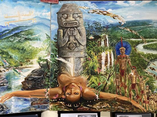 Im Museum sind bunte Bilder vom Leben während der San Agustin-Kultur. Vor allem die Verehrung der Pachamama, der Mutter Erde fällt mir auf. Das scheint ein Begriff zu sein, der in weiten Teilen der Anden verbreitet war. Eindrücklich ist auch der Einfall der Spanier dargestellt. Ein Feuersturm, der alles zerstört und und nicht übrig lässt, was vorher war.