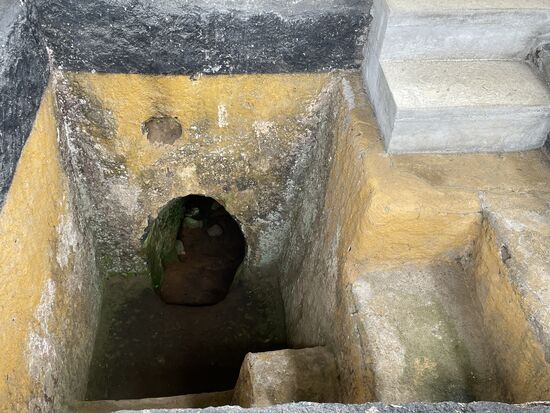 Draussen unter ausladenden Dachkonstruktionen gibt es Gräber. Sie wurden hier so gefunden. Tiefe Gruben und Gruften. Die Kleine, Lisy heisst sie, erzählt genau, was überall gefunden wurde, wie viele Gefässe und Töpfe. Von menschlichen Überresten erzählt sie nichts. Auch auf den Tafeln steht nichts davon. Ganz am Schluss meint sie noch, ich soll doch noch den Shop besuchen und Propina sei freiwillig. Wortgetreu, was bei jeder Führung am Schluss gesagt wird. Natürlich bekommt sie ihre Propina und ihre Augen strahlen.