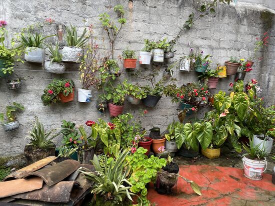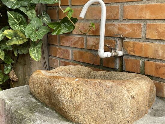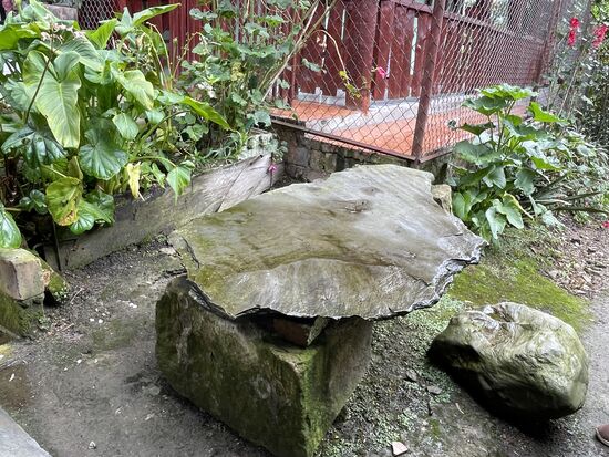 "Willst du sie sehen?" Fragt der Wirt Natürlich will ich sie sehen. In einem Stall hält er sie in Käfigen über 400 sollen es sein. Ein Mehrschweinchen wiegt 1300 Gramm, ausgenommen sind sie noch 900, am Spiess gebraten ist es noch die Hälfte. Vielleicht wäre es Zeit für ein Mittagessen gewesen, ich habe den Wink nicht verstanden, hatte auch gar keinen Hunger, da ich einerseits gut gefrühstückt hatte und immer erst abends esse. Aber Jefferson hatte zu diesem Zeitpunkt wohl Hunger. Gesagt hat er mir das allerdings erst viel später. So trinken wir also nur einen Kaffee und hören den Erzählungen des freundlichen Wirts zu. Die Pflanze hinter mir, heisse Millionärspflanze. Wenn man sie habe, würde das Geld nur so hereinfliessen. Vielleicht nutzt es auch, wenn man einen Moment neben ihr sitze. Und sein Lavabo bei den Toiletten sei 3000 Jahre alt. Es wurde hier auf dem Gelände gefunden, so wie noch viele alte bearbeitete Steine, die jetzt verteilt in den Häusern benutzt oder in irgendwelche Museen verkauft wurden.