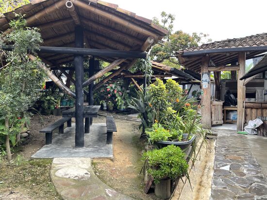 Beim Verkaufsstand bestellen wir einen Fruchtsaft. Während der Besitzer diesen zubereitet, meint Jefferson, dass er wahrscheinlich ein Schweizer sei. Er heisse Philipp/Felipe. Nun, das will ich gleich überprüfen und als er mir meinen Baumtomatensaft hinstellt, bedanke ich mich mit einem glarnerischen "Tanggä" Er stutzt nur kurz, und ganz schnell sind wir im Gespräch. Philipp scheint ein Tausendsassa zu sein. Er lebt schon ziemlich lange hier, hat drei Kinder zwischen 3 und 8 Jahren und ist mit einer Kolumbianerin verheiratet. Früher hatte er hier auch noch ein gutgehendes Hotel, doch als die Kinder kamen, fand er, dass er sich lieber mehr Zeit für die Kinder nehmen möchte und seither sind die Bungalows oben auf dem Hügel verwaist. Dafür lief sein Verkaufsstand vor der Pandemie ganz gut. Mindestens 200 - 300 Leute kamen täglich hierher, heute sind es nur noch ein paar Handvoll. Doch das stimmt für ihn im Moment. Er hat schon wieder ein paar Pläne. Allerdings braucht er heute viel Zeit, um die Kinder täglich hinunter zur Schule zu fahren. Das gibt dann 4 Fahrten pro Tag und damit ist er schon recht beschäftigt. Die Idee mit den Replikas kam von ihm. Zwar stellt er sie nicht selber her, aber er war wohl der Initiant der Idee. Wollte, dass die Statuen, deren Originale zum Teil in der ganzen Welt verteilt sind, auch den Einheimischen noch zur Verfügung stehen würden. Es sind Betongüsse, und sie werden in einem der nahen Dörfer hergestellt.