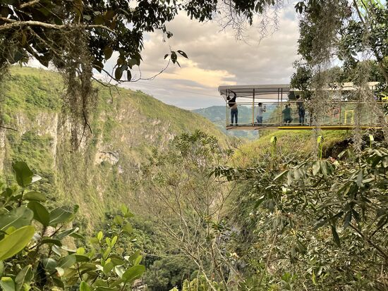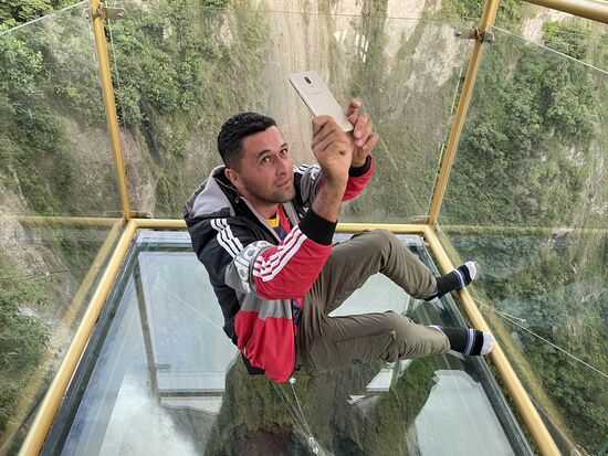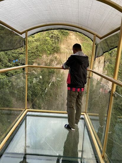 Doch es gibt noch weitere Attraktionen. Einen Glassteg, der mindestens fünf Meter hinaus in den Abgrund ragt. Eine Mutprobe. Jedenfalls für Jefferson. Er wäre im Moment lieber nur Chauffeur und hätte im Wagen auf mich gewartet. Aber da er mich begleitet, soll er auch auf den Steg hinaus. Ein paar junge Leute sind noch auf dem Steg und bitten ihn, sie zu fotografieren und hilfsbereit wie er ist, geht er hin und ist unvermittelt auf dem Glasboden. Später setzt er sich noch auf den Boden und das wäre dann doch ein sehr spezieller Moment gewesen, erklärt er mir später. Aber da er jetzt schon einmal hier ist, will er die Möglichkeiten nutzen und ein paar spektakuläre Fotos machen.