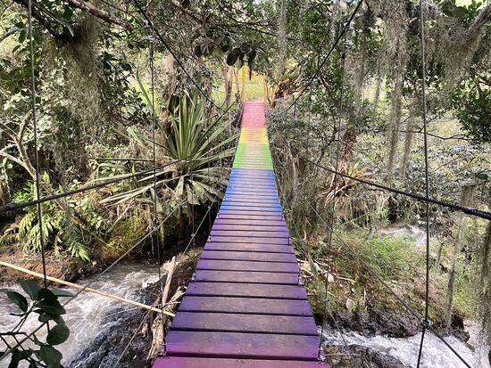Auch auf die Hängebrücke gehen wir noch. Sie wackelt ein wenig, und vielleicht ist auch das eine Mutprobe.