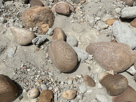 Auch ein paar Versteinerungen von Muscheln zeigt er mir. Und Versteinerungen von alten Bäumen, die wie Relikte aus einer anderen Zeit aus dem Boden ragen.