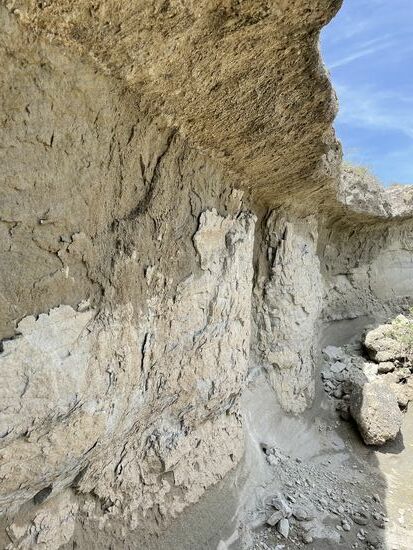 Unser Spaziergang soll eine Stündchen dauern, hat Isabelle gesagt, bevor wir uns getrennt haben. Nach und nach kommen wir hinunter auf den Grund der Wüste, dort wo man die Spuren noch sieht, die das Wasser hinterlassen hat. Wir kommen durch einen schmalen Canon mit hohen geschwungenen Mauern aus Sandstein. Dazwischen gibt es auch Steinbrocken, in denen kleinen Kieselsteine eingeschlossen sind. Miguel erklärt wie diese entstanden sind durch Druck und Erosion. Natürlich hat er keine Ahnung, dass ich in der Nähe des höchsten Nagelfluhberges Europas aufgewachsen bin. Der Speer hinter Amden, am Walensee besteht genau aus dieser Verbindung von kleinen Kieselsteinen und Sand.