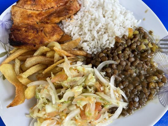 Und dann, ich glaube es nicht, erwacht auch mein Handy wieder. Jetzt, wo ich die allerbesten Fotos verpasst habe, reagiert es wieder. Ich nehme den Aufstieg unter die Füsse und schon bald fahren wir zur Finca von Miguel. Er hat hier einen kleinen Bauernhof mit Hühnern, ein paar Ziegen und ein paar Kühen. Zusätzlich zu seiner Landwirtschaft gibt es einfache Mahlzeiten, die seine Frau mit einer Helferin zubereitet. Leider mag ich nach der Anstrenung kaum etwas essen. Es kam wohl einiges zusammen. Der Frust mit der Kamera, die Hitze und die Anstrengung.