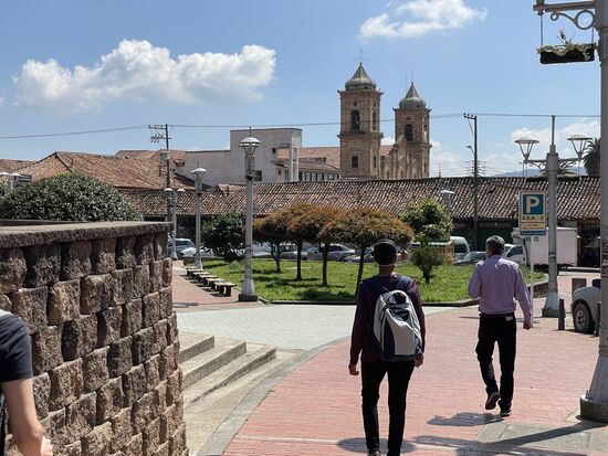 Heute habe ich eine Tour gebucht. Es geht ins 50 km entfernte Zipaquira. Pünktlich um acht Uhr werde ich abgeholt. Bevor ich aber in den Minibus einsteigen darf, muss ich einen aufwändigen Gesundheitscheck ausfüllen. Auf dem Handy des Tourguides werden die Daten übermittelt. Name und Passnummer. Hast du Husten, Beschwerden, Fieber gemessen, geimpft? Die Fragen sind lang und ausführlich. Doch dann darf ich zusteigen. Wir sind eine internationale Truppe. Zwei Mexikaner, ein Franzose, eine Guatemaltekin und dann kommen noch drei Brasilianerinnen dazu, die den Tourguide Carlos beim Warten auf den Franzosen angesprochen und spontan zugesagt haben.