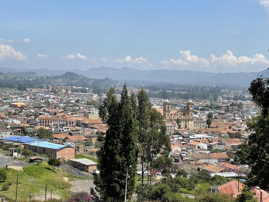 Wir parkieren beim Plaza de Independenzia, beim Unabhängigkeitsplatz. Ein grosser Platz mit Geschäften rundum, ein gepflegter Park. Vom nahen Hauptplatz kann man die sehr schöne Kathedrale erkennen, die über die meist eingeschossigen Häuser ragt. Eine typische gepflegte Kolonialstadt. Doch wir sind nicht der Stadt wegen gekommen, darum gibt es auch nur kurz Zeit, uns umzusehen. Carlos gibt die Zeit vor: "in 20 Minuten treffen wir uns wieder hier. Da gibt es Toiletten und dort geradeaus geht es zum Hauptplatz. Viel Vergnügen."