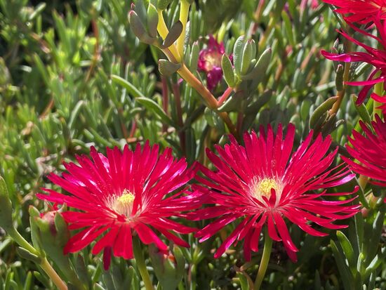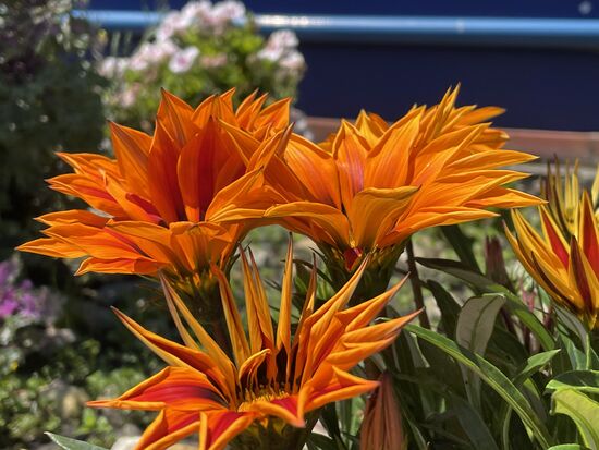 Wir müssen noch etwas warten, bis wir hinein können. Das gibt mir Zeit, mich in den Blumenrabatten umzusehen, wo ein paar strahlende Blumen blühen.