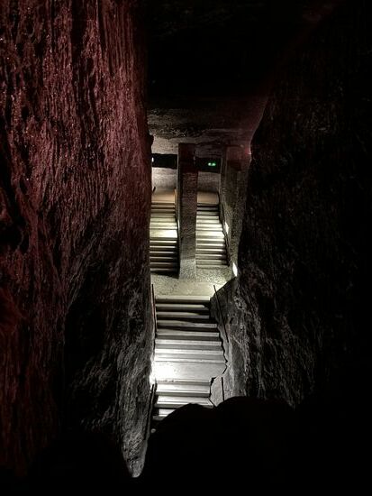 Sie sind jetzt in 180 m Tiefe höre ich aus meinem Kopfhörer. Das ist eine ganze Menge Salz und Stein, der sich da über mir auftürmt. In einem Seitenschiff trete ich in die Kapelle der Jungfrau. An den Wänden in Nischen sind verschiedene Skulpturen. Zum Teil hinter Glas, zum Teil offen.