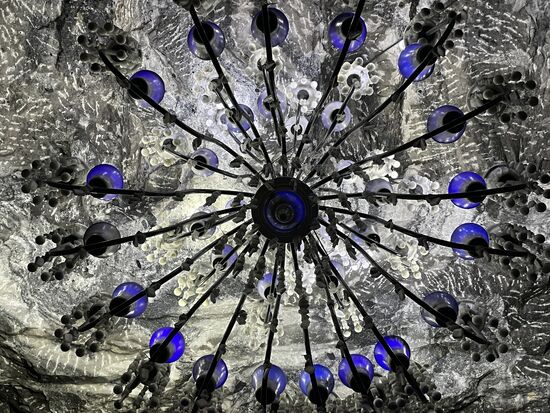 Ich trödle noch ein wenig, höre meinem Begleiter im Ohr zu, der erklärt, dass die Lüster an den Decken aus tausenden von Salztropfen bestehen, die mit blauem Glas und weissen Lampen ergänzt, eine zauberhafte Beleuchtung ergeben.
