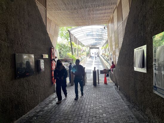 Es fehlt noch eine halbe Stunde bis zum Treffpunkt. Eigentlich würde es eine kleine Bahn geben, die hinaus fährt, doch ich ziehe den umgekehrten Gang zurück durch die verschiedenen Kammern vor. Kann noch einmal unanbhängig von der Stimme im Ohr die Stimmungen aufnehmen und bin bald zurück am Tageslicht.