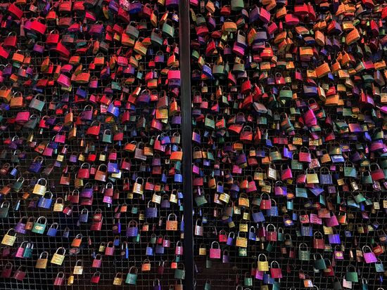Ich trinke einen Kaffee in der kleinen Cafeteria und sehe nach langer Zeit wieder einmal eine Wand mit kleinen Liebesschlössern. Hier hat man mit dem Gewicht all dieser Schlösser kein Problem. An anderen Orten auf der Welt mussten sie aus Sicherheitsgründen wieder von Brückengeländern entfernt werden, denn die Dinger bekommen richtig Gewicht, wenn sie so in Massen angebracht werden.
