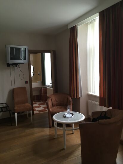 Seine Frau bedient die Rezeption, weder unsere Einreisegenehmigung des belgischen Staates noch unsere Impfausweise will sie sehen, nur die Maskenpflicht wird penibel eingehalten. Wir erhalten den Schlüssel zu 101. Das Zimmer ist recht einfach eingerichtet, das Bad groß.