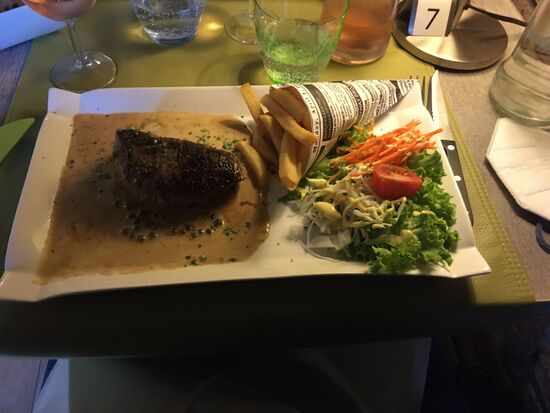 Am Abend haben wir dann Probleme ein geöffnetes Restaurant zu finden - offenbar haben wegen der Pandemie zahlreiche Restaurants die gleichen Probleme wie unser Patron im Schloß - die meisten sind nur noch do-so geöffnet. Deshalb bleibt uns nur ein Lokal mit Forelle und Steak.