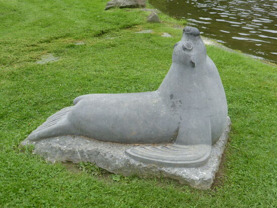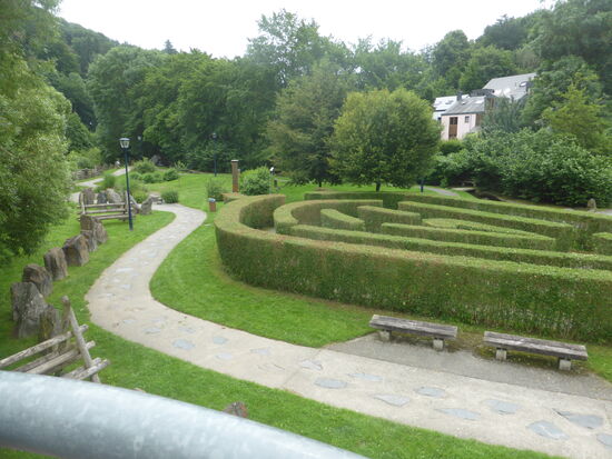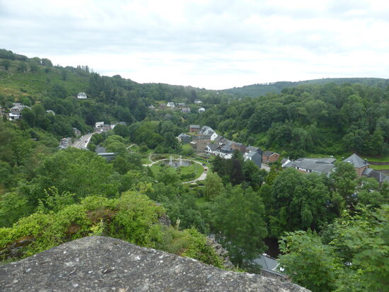 Von der Burg ist ein interesanater Ausblick auf einen Park - neugierig wählen wir den Weg dorthin, und finden einen abwechselungsreichen Park am Ufer der Ourthe.