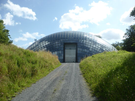 Die Originalität dieses Gebäudes resultiert vor allem aus der harmonischen Verwendung geschwungener Formen, der Verbindung verschiedener Materialien und vor allem seinem Holzrahmen. Es handelt sich um eine dampfgebogene massive Ardenner Fichtenholzstruktur.