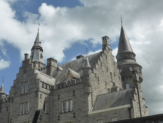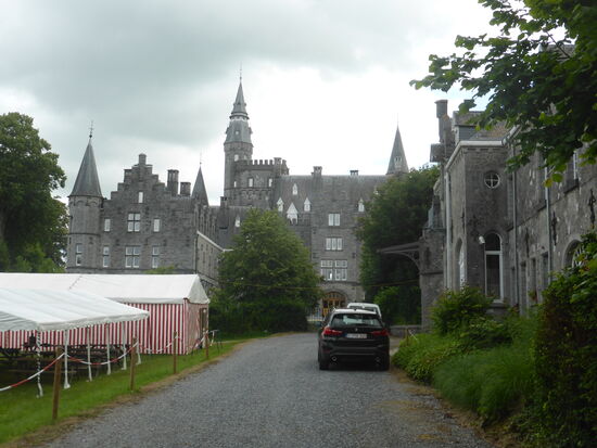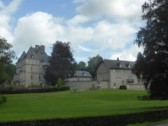 Südlich der Stadt finden wir das Chateau de Leignon, obwohl für ein Kinderfest geworben wird und auf dem Gelände viel los ist, werden wir am Eingang 'verscheucht' mit der Bemerkung 'privée' - Eingeschränkte Eindrücke kann man sich aber vom Gelände der benachbarten Kirche machen und schließlich von dr Landstrasse.