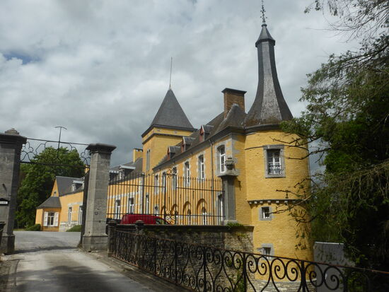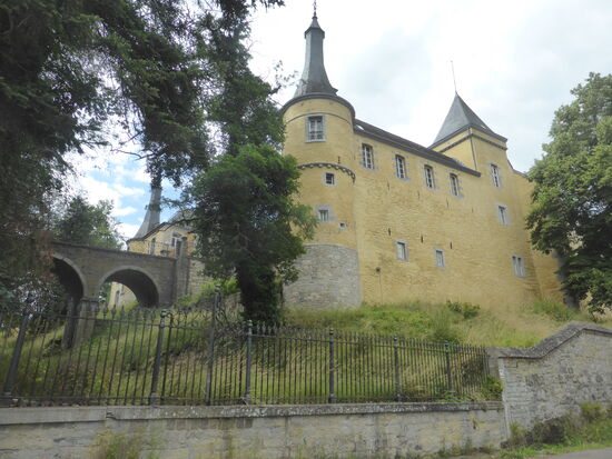 Auif der Fahrt nach Villers sur Lesse, sehen  wir auf einer Anhöhe das Chateau Royal de Ciergnon.