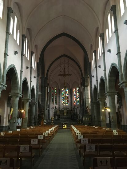 Mitten in der wichtigsten Einkaufsstraße dieses touristischen Anziehungspunkts der Ardennen gelegen, wurde die Kirche 1900 in neugotischem Stil errichtet.Nach Beschädigungen im Jahre 1945 wurde sie später gut wiederhergestellt.