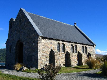 Und wie zuhause kann man sich auch fuehlen. Am Ufer des Sees liegt die kleine Kirche Zum Guten Hirten