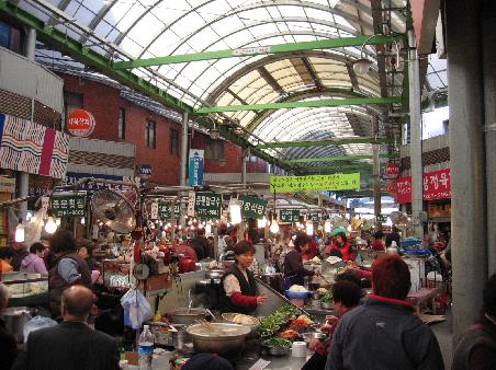 Von einer Art Germknoedel, der mit suessen Bohnen gefuellt war, ueber eine Art Reismehlwurst am Spiess umhuellt mit Speck und Chillisosse bis zu Manduguk (eine Art Maultasche).