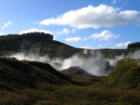 Das erste Ziel in Lake Taupo waren die sogenannten "Craters of the Moon". Eine bizarre vulkanisch aktive Landschaft, in der es an allen Ecken und Enden aus Erdloechern dampft und brodelt.