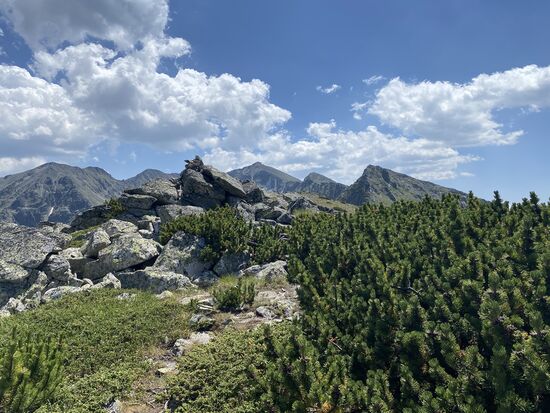 Hier haben wir schon mal einen tollen Blick auf unser Ziel: den Musala-Über die 2 kleineren Berge rechts müssen wir vorher rüber