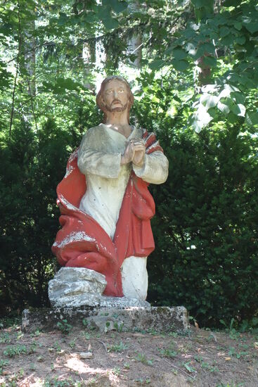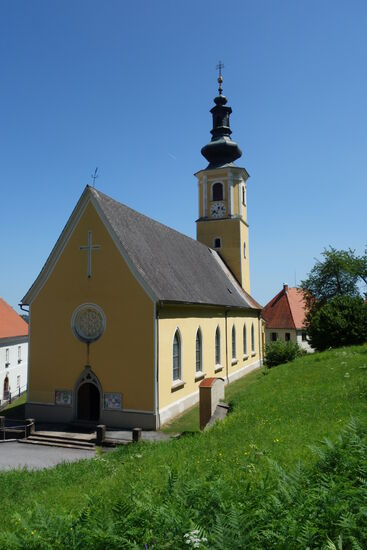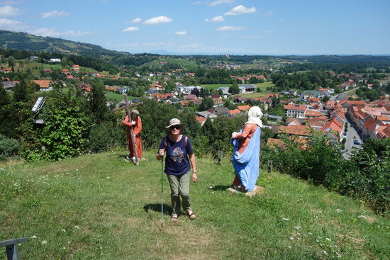 Der richtige Weg beginnt an der Pfarrkirche und führt über ihren Fridhof und den Rosenkranzweg.